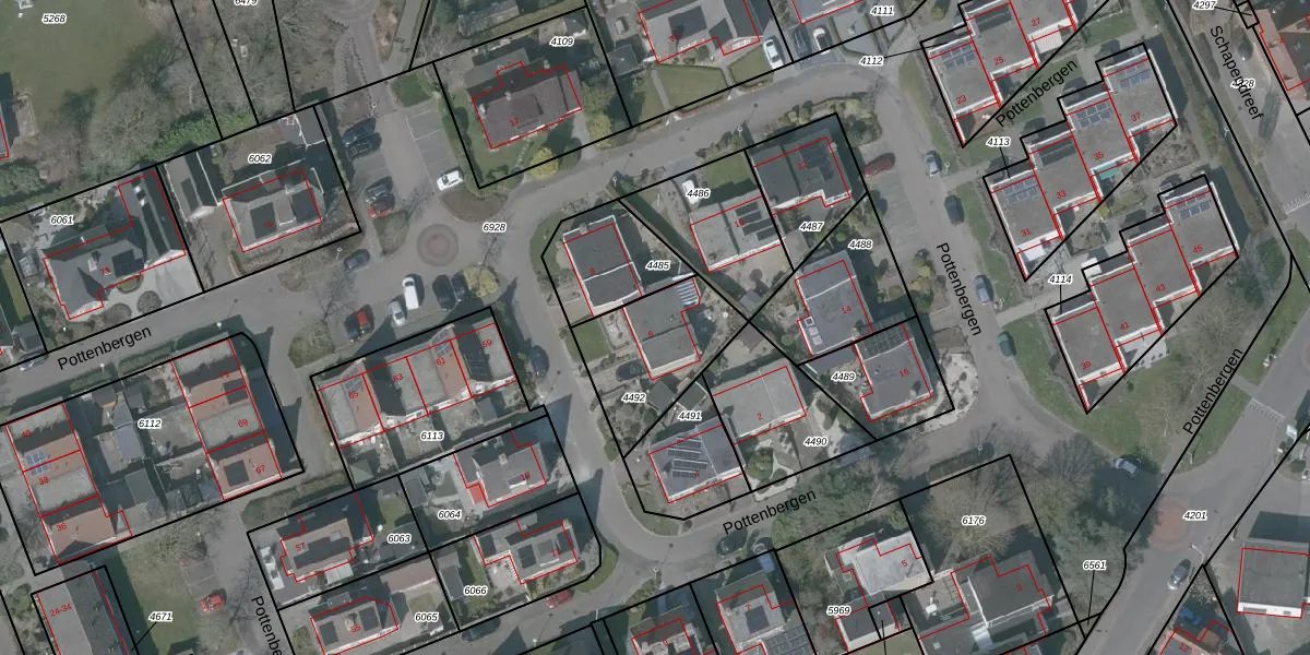 Pottenbergen 6 is gelegen op kadastraal perceel OSD00D4492. Deze kadastrale aanduiding is uniek en wordt gebruikt door het Kadaster om eigendomsrechten en andere zakelijke rechten vast te leggen. Het perceel maakt onderdeel uit van de kadastrale gemeente Ossendrecht.