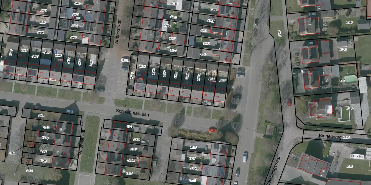 Het perceel waarop Schaepmanlaan 45 staat heeft een oppervlakte van 148 m². Dit is een middelgroot perceel. De perceeloppervlakte wordt geregistreerd door het Kadaster. Gedetailleerde informatie over de maten van dit perceel kunt u vinden in het rapport Kadastrale kaart met maatvoering van Schaepmanlaan 45.