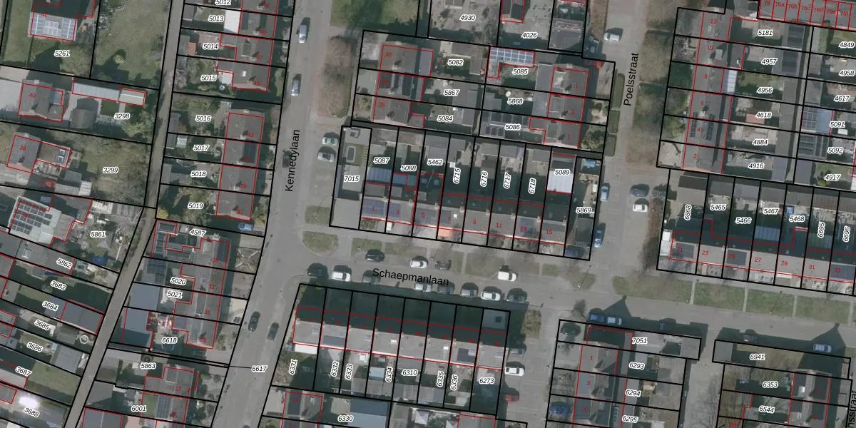 Gebruik de zoekbalk of klik op een perceel voor informatie over de adressen binnen dit perceel.