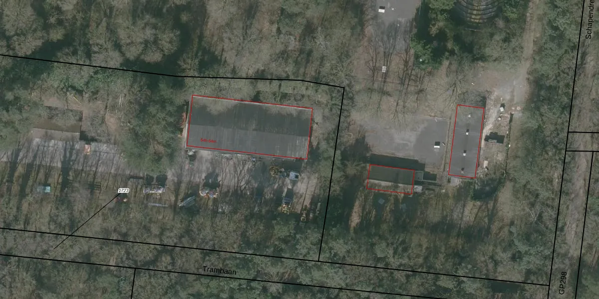 Het perceel waarop Trambaan 54-m staat heeft een oppervlakte van 1,6 ha. Dit is een zeer groot perceel. De perceeloppervlakte wordt geregistreerd door het Kadaster. Gedetailleerde informatie over de maten van dit perceel kunt u vinden in het rapport Kadastrale kaart met maatvoering van Trambaan 54-m.