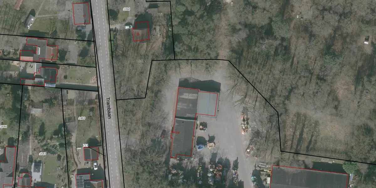 Het perceel waarop Trambaan 54-a staat heeft een oppervlakte van 1,6 ha. Dit is een zeer groot perceel. De perceeloppervlakte wordt geregistreerd door het Kadaster. Gedetailleerde informatie over de maten van dit perceel kunt u vinden in het rapport Kadastrale kaart met maatvoering van Trambaan 54-a.