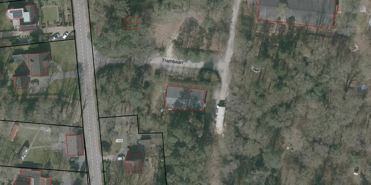 Het perceel waarop Trambaan 58 staat heeft een oppervlakte van 6,2 ha. Dit is een zeer groot perceel. De perceeloppervlakte wordt geregistreerd door het Kadaster. Gedetailleerde informatie over de maten van dit perceel kunt u vinden in het rapport Kadastrale kaart met maatvoering van Trambaan 58.