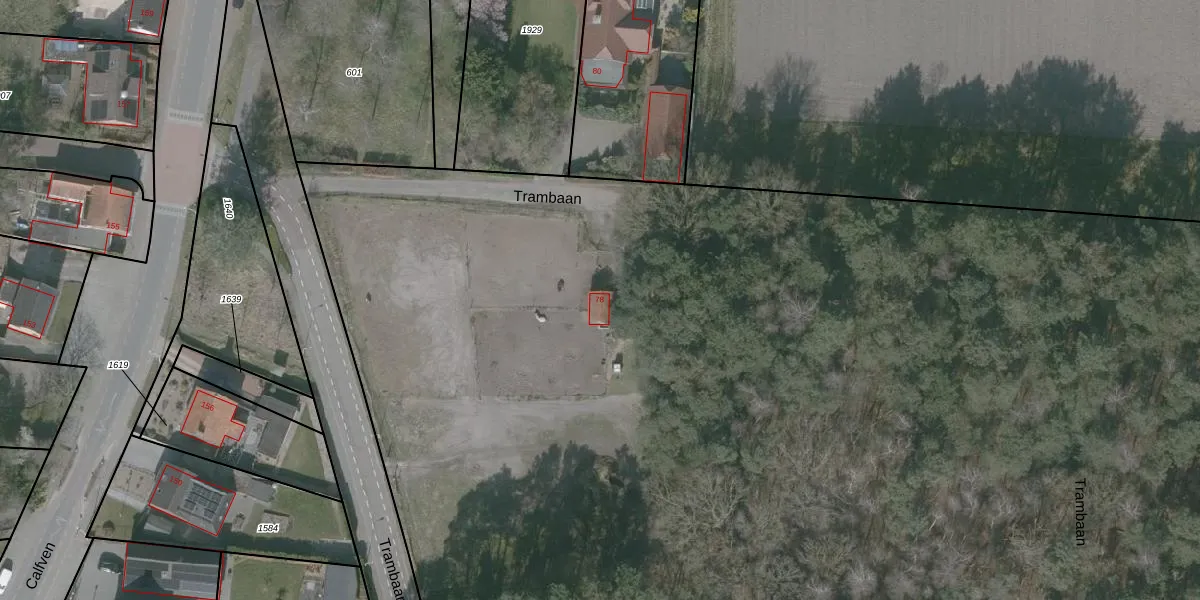 Het perceel waarop Trambaan 78 staat heeft een oppervlakte van 7,2 ha. Dit is een zeer groot perceel. De perceeloppervlakte wordt geregistreerd door het Kadaster. Gedetailleerde informatie over de maten van dit perceel kunt u vinden in het rapport Kadastrale kaart met maatvoering van Trambaan 78.