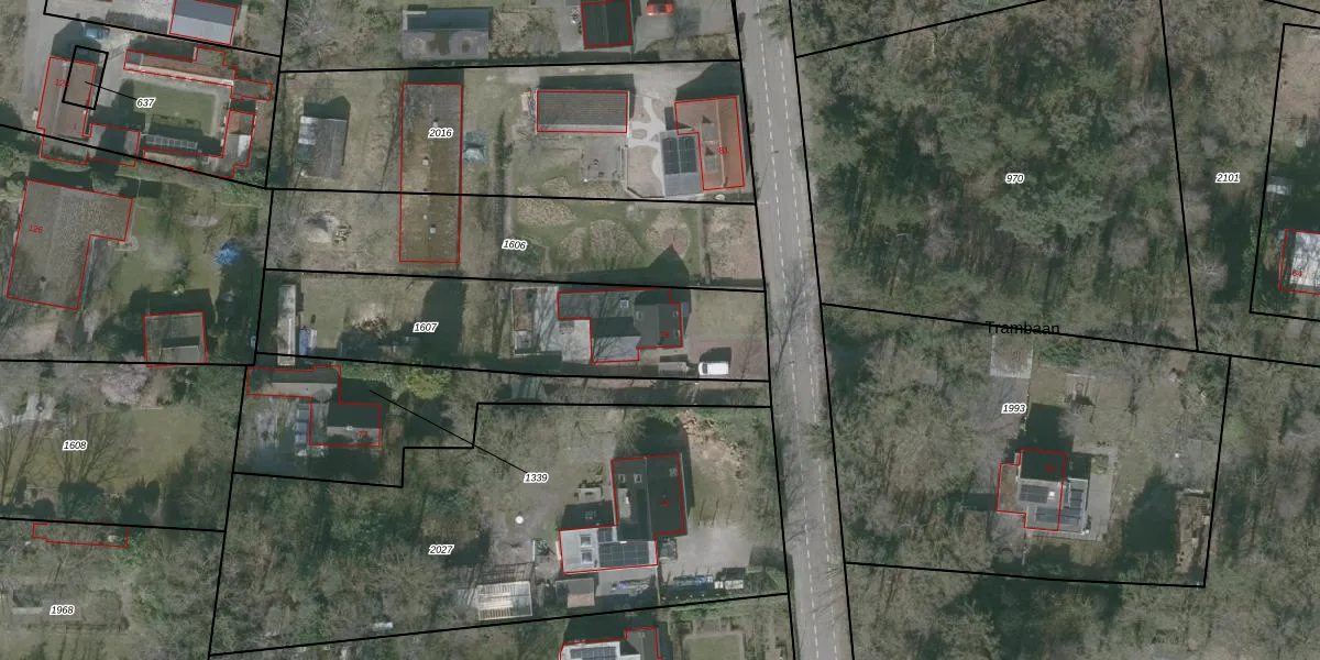 Het perceel waarop Trambaan 79 staat heeft een oppervlakte van 1046 m². Dit is een zeer groot perceel. De perceeloppervlakte wordt geregistreerd door het Kadaster. Gedetailleerde informatie over de maten van dit perceel kunt u vinden in het rapport Kadastrale kaart met maatvoering van Trambaan 79.