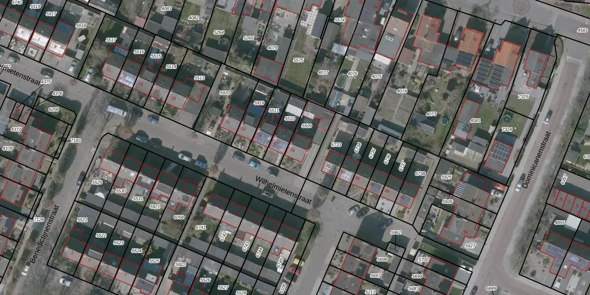 Het perceel waarop Wilhelmietenstraat 29 staat heeft een oppervlakte van 256 m². Dit is een middelgroot perceel. De perceeloppervlakte wordt geregistreerd door het Kadaster. Gedetailleerde informatie over de maten van dit perceel kunt u vinden in het rapport Kadastrale kaart met maatvoering van Wilhelmietenstraat 29.