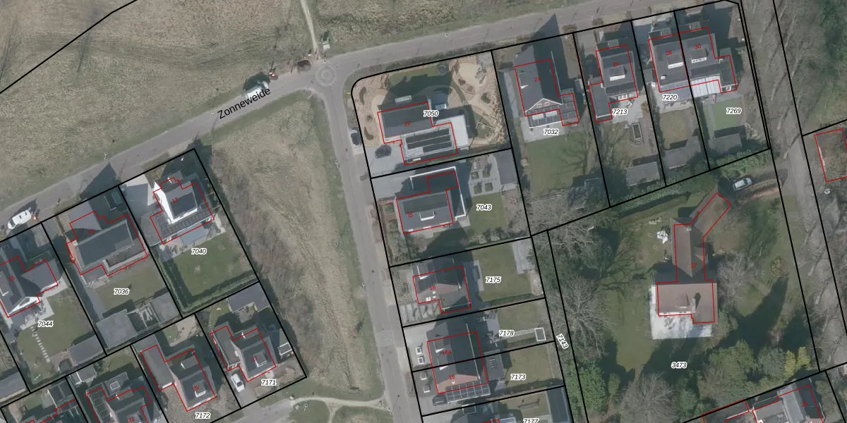 Het perceel waarop Zonneweide 20 staat heeft een oppervlakte van 734 m². Dit is een groot perceel. De perceeloppervlakte wordt geregistreerd door het Kadaster. Gedetailleerde informatie over de maten van dit perceel kunt u vinden in het rapport Kadastrale kaart met maatvoering van Zonneweide 20.