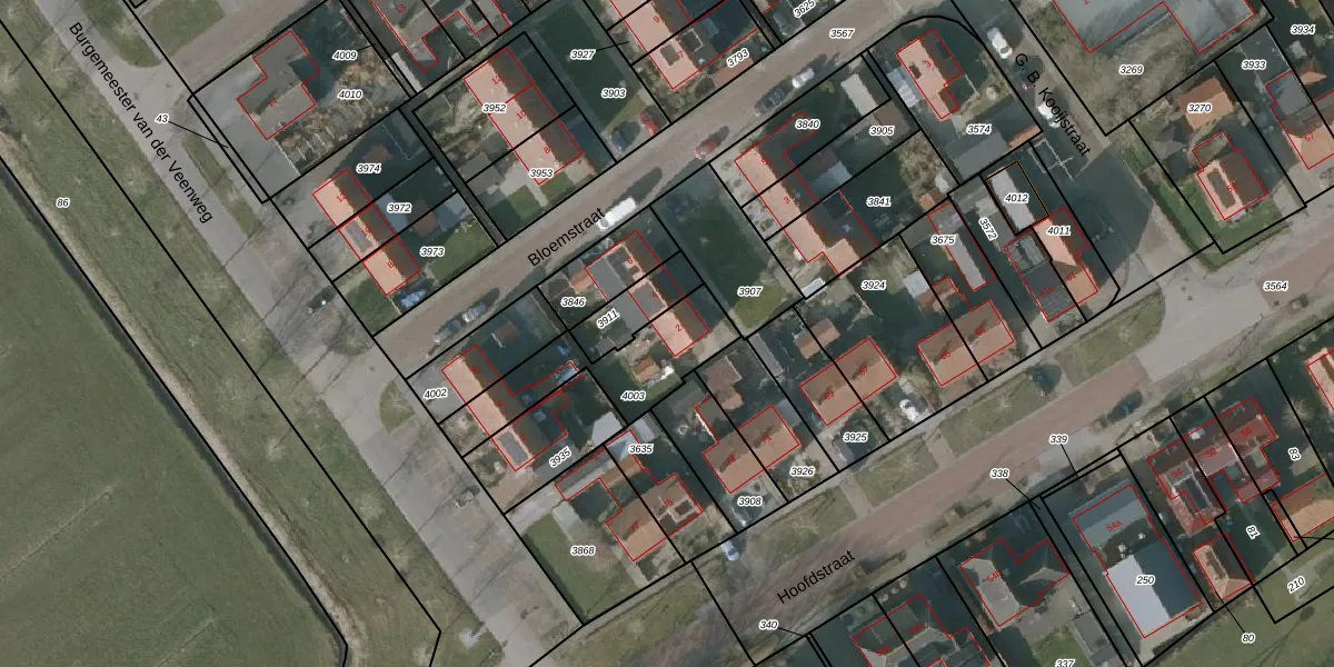 Het perceel waarop Bloemstraat 2 staat heeft een oppervlakte van 365 m². Dit is een groot perceel. De perceeloppervlakte wordt geregistreerd door het Kadaster. Gedetailleerde informatie over de maten van dit perceel kunt u vinden in het rapport Kadastrale kaart met maatvoering van Bloemstraat 2.