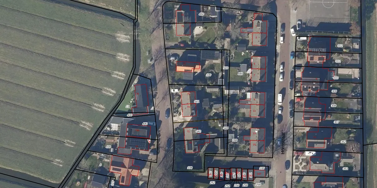 Het perceel waarop Dorpsstraat 75 staat heeft een oppervlakte van 530 m². Dit is een groot perceel. De perceeloppervlakte wordt geregistreerd door het Kadaster. Gedetailleerde informatie over de maten van dit perceel kunt u vinden in het rapport Kadastrale kaart met maatvoering van Dorpsstraat 75.