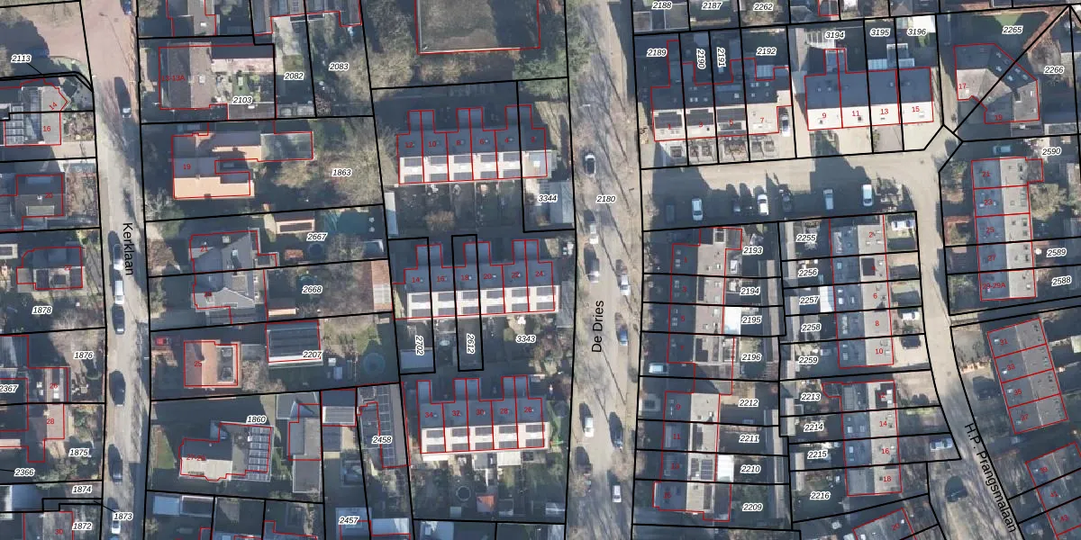 Het perceel waarop De Dries 24 staat heeft een oppervlakte van 2141 m². Dit is een zeer groot perceel. De perceeloppervlakte wordt geregistreerd door het Kadaster. Gedetailleerde informatie over de maten van dit perceel kunt u vinden in het rapport Kadastrale kaart met maatvoering van De Dries 24.