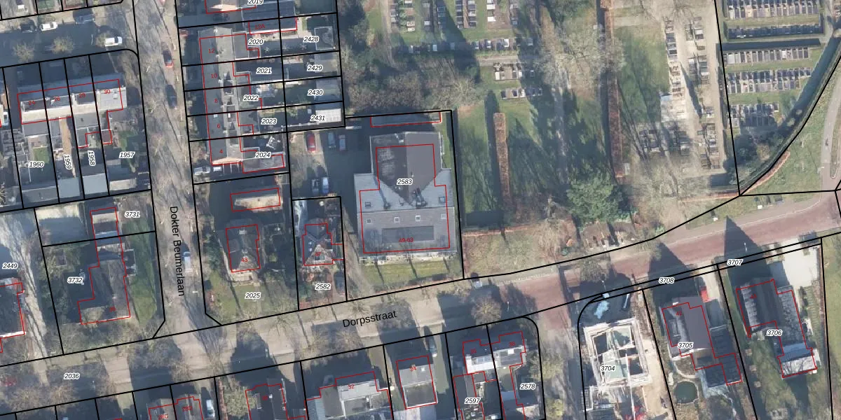 Het perceel waarop Dorpsstraat 59 staat heeft een oppervlakte van 1348 m². Dit is een zeer groot perceel. De perceeloppervlakte wordt geregistreerd door het Kadaster. Gedetailleerde informatie over de maten van dit perceel kunt u vinden in het rapport Kadastrale kaart met maatvoering van Dorpsstraat 59.