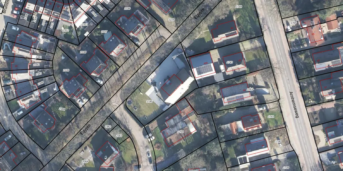 Het perceel waarop Egypte 1 staat heeft een oppervlakte van 985 m². Dit is een groot perceel. De perceeloppervlakte wordt geregistreerd door het Kadaster. Gedetailleerde informatie over de maten van dit perceel kunt u vinden in het rapport Kadastrale kaart met maatvoering van Egypte 1.