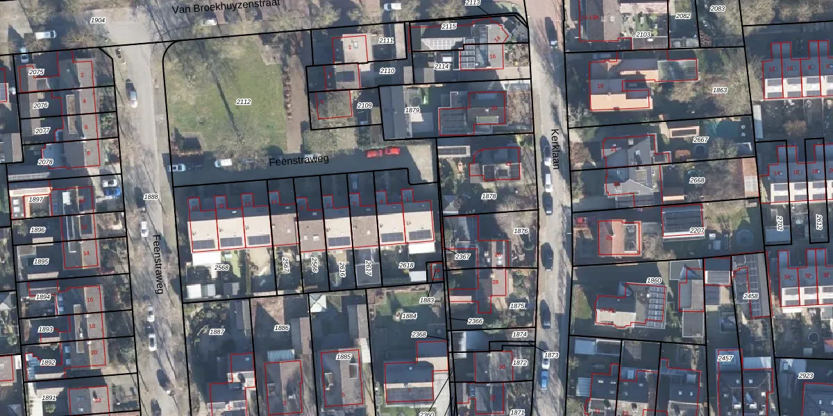 Het perceel waarop Feenstraweg 1 staat heeft een oppervlakte van 376 m². Dit is een groot perceel. De perceeloppervlakte wordt geregistreerd door het Kadaster. Gedetailleerde informatie over de maten van dit perceel kunt u vinden in het rapport Kadastrale kaart met maatvoering van Feenstraweg 1.