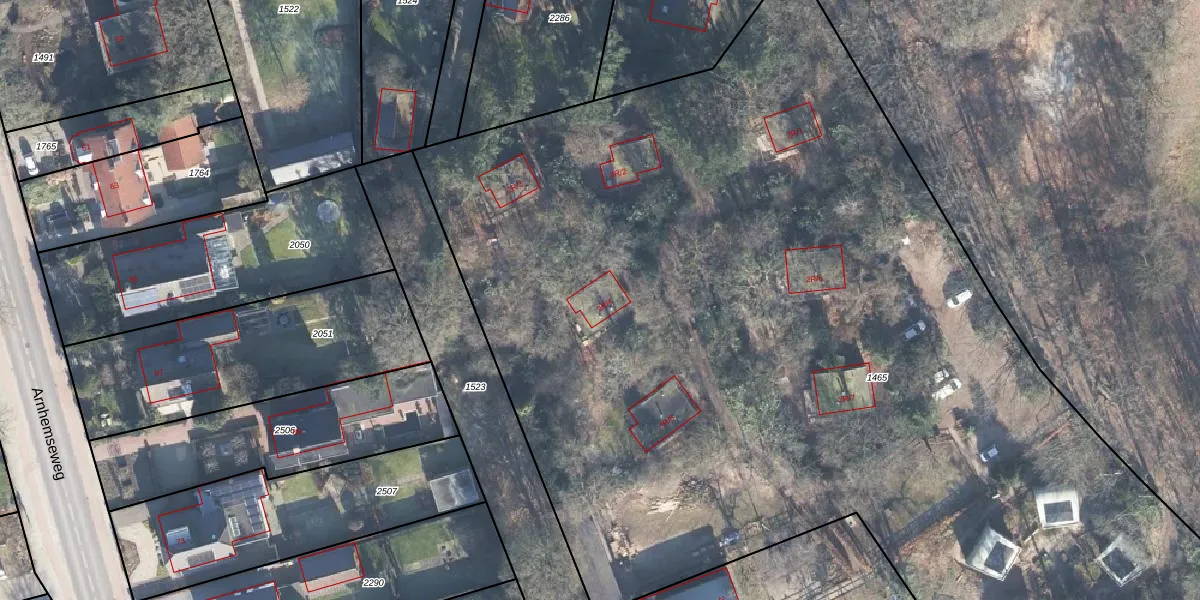 Het adres is gelegen op perceel 1465 in de sectie B en de kadastrale gemeente Otterlo. De kadastrale aanduiding is aldus OTL02-B-1465. Het perceel is kleiner dan gemiddeld in Otterlo. Het perceel is 1,3 ha groot, terwijl het gemiddelde ligt op 2,7 ha. De grootste perceeloppervlakte in de kadastrale gemeente is 11,55 km². De kleinste oppervlakte bedraagt 0 m². Er zijn 13 adressen aanwezig op het perceel. In de Basisregistratie Kadaster (BRK) werden de grenzen van het perceel geregistreerd op 06-01-2011.