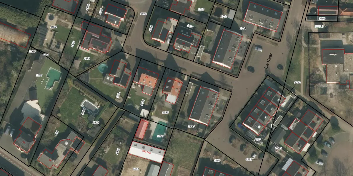Het perceel waarop De Kaar 21 staat heeft een oppervlakte van 483 m². Dit is een groot perceel. De perceeloppervlakte wordt geregistreerd door het Kadaster. Gedetailleerde informatie over de maten van dit perceel kunt u vinden in het rapport Kadastrale kaart met maatvoering van De Kaar 21.