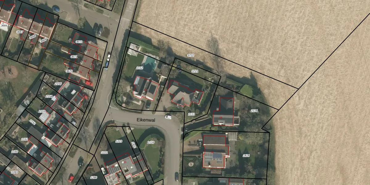 Eikenwal 20 is gelegen op kadastraal perceel OTS00E2113. Deze kadastrale aanduiding is uniek en wordt gebruikt door het Kadaster om eigendomsrechten en andere zakelijke rechten vast te leggen. Het perceel maakt onderdeel uit van de kadastrale gemeente Ottersum.