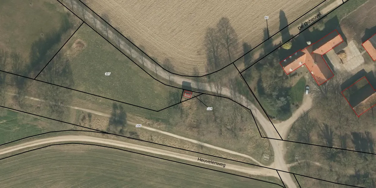 Het adres is gelegen op perceel 114 in de sectie F en de kadastrale gemeente Ottersum. De kadastrale aanduiding is aldus OTS00-F-114. Het perceel is kleiner dan gemiddeld in Ottersum. Het perceel is 37 m² groot, terwijl het gemiddelde ligt op 5195,79 m². Het grootste perceel in de kadastrale gemeente is 53,1 ha. Het kleinste perceel heeft een oppervlakte van 0 m². Er zijn geen andere adressen aanwezig op het perceel. De laatste wijziging in het de Basisregistratie Kadaster (BRK) was op 12-12-2007.