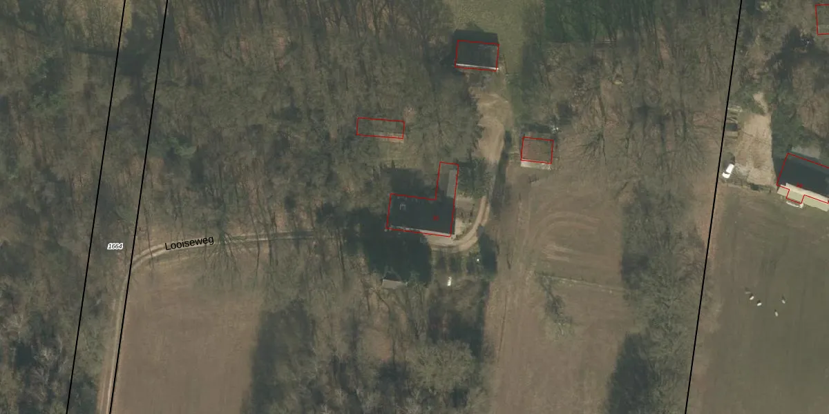 Het perceel waarop Looiseweg 16 staat heeft een oppervlakte van 4,0 ha. Dit is een zeer groot perceel. De perceeloppervlakte wordt geregistreerd door het Kadaster. Gedetailleerde informatie over de maten van dit perceel kunt u vinden in het rapport Kadastrale kaart met maatvoering van Looiseweg 16.