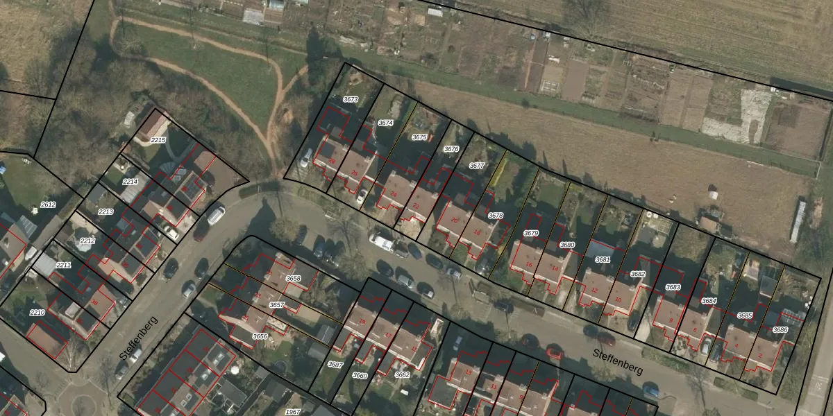 Het perceel waarop Steffenberg 22 staat heeft een oppervlakte van 185 m². Dit is een middelgroot perceel. De perceeloppervlakte wordt geregistreerd door het Kadaster. Gedetailleerde informatie over de maten van dit perceel kunt u vinden in het rapport Kadastrale kaart met maatvoering van Steffenberg 22.