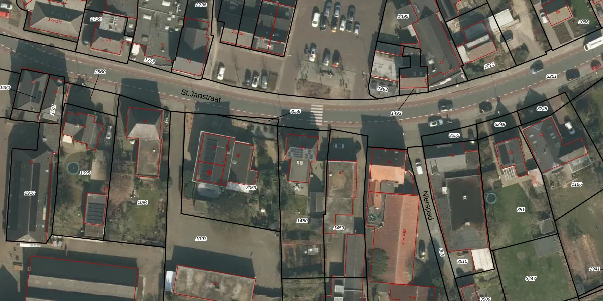 St.Janstraat 38 is gelegen op kadastraal perceel OTS00E1450. Deze kadastrale aanduiding is uniek en wordt gebruikt door het Kadaster om eigendomsrechten en andere zakelijke rechten vast te leggen. Het perceel maakt onderdeel uit van de kadastrale gemeente Ottersum.