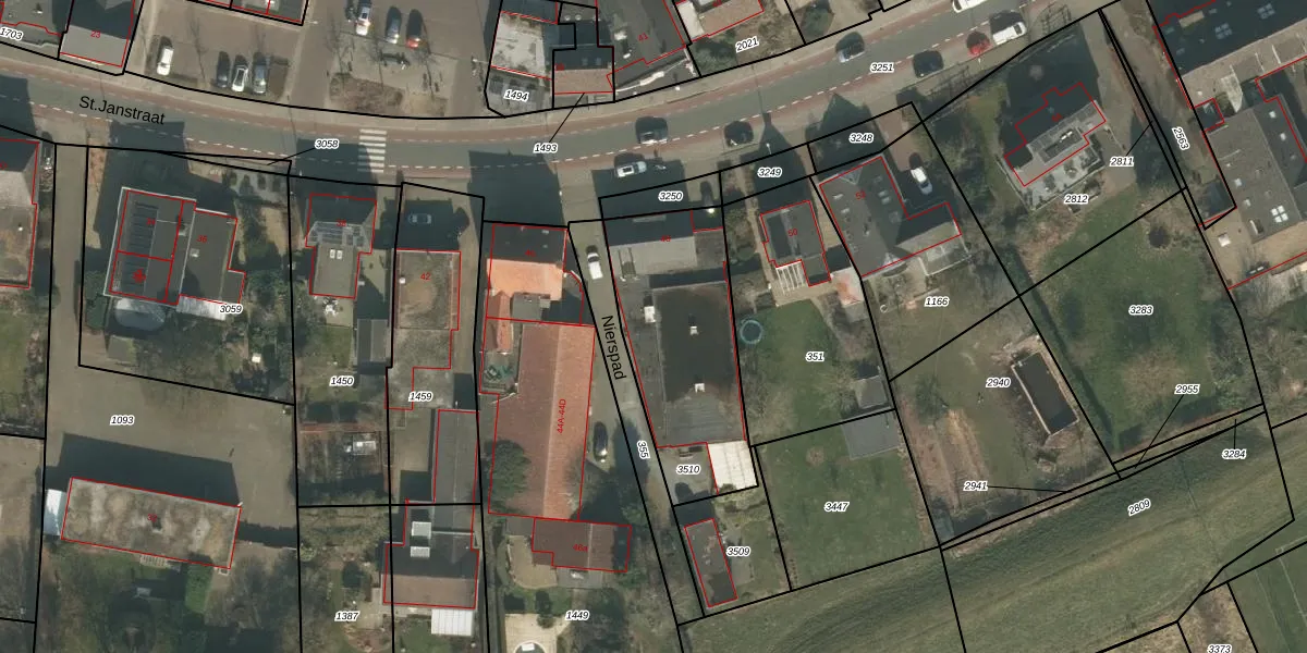 St.Janstraat 48 is gelegen op kadastraal perceel OTS00E3510. Deze kadastrale aanduiding is uniek en wordt gebruikt door het Kadaster om eigendomsrechten en andere zakelijke rechten vast te leggen. Het perceel maakt onderdeel uit van de kadastrale gemeente Ottersum.