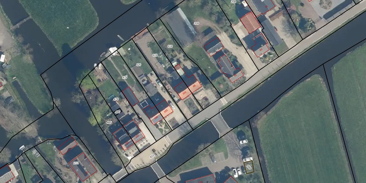 Het perceel waarop B 101 staat heeft een oppervlakte van 545 m². Dit is een groot perceel. De perceeloppervlakte wordt geregistreerd door het Kadaster. Gedetailleerde informatie over de maten van dit perceel kunt u vinden in het rapport Kadastrale kaart met maatvoering van B 101.