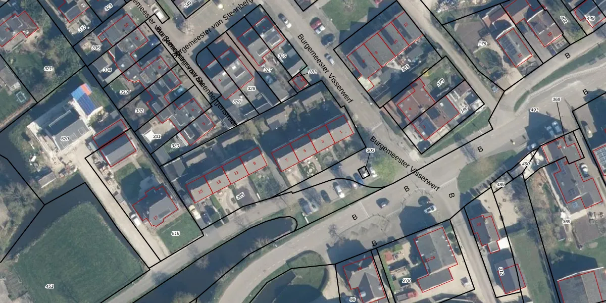 Het perceel waarop B 5 staat heeft een oppervlakte van 1580 m². Dit is een zeer groot perceel. De perceeloppervlakte wordt geregistreerd door het Kadaster. Gedetailleerde informatie over de maten van dit perceel kunt u vinden in het rapport Kadastrale kaart met maatvoering van B 5.