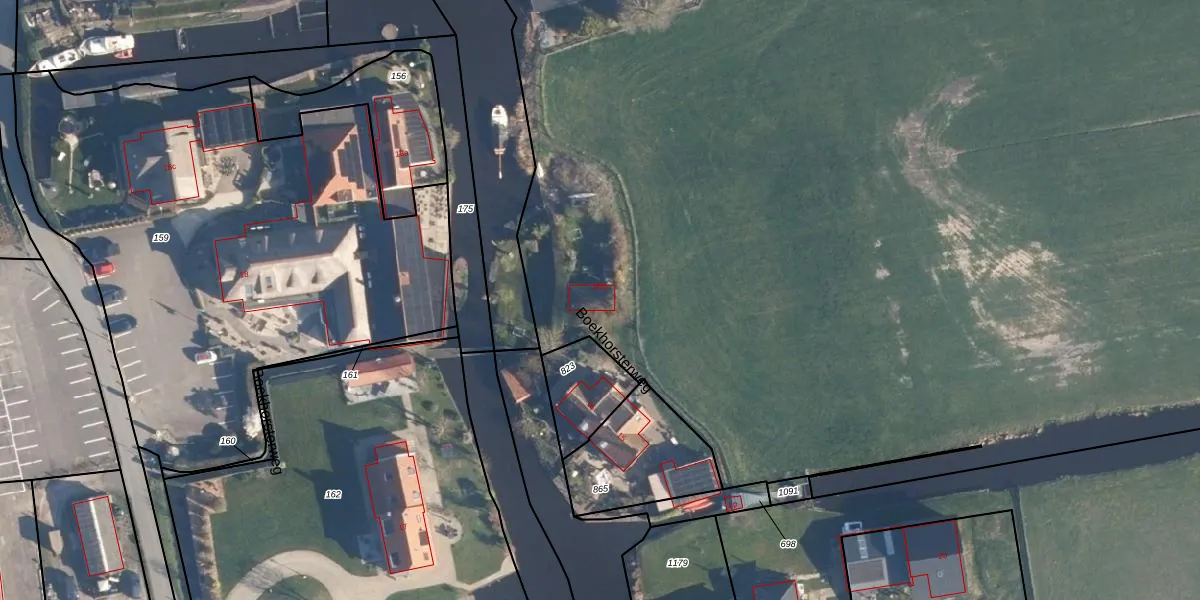 Het perceel waarop Boekhorsterweg 16-a staat heeft een oppervlakte van 29,5 ha. Dit is een zeer groot perceel. De perceeloppervlakte wordt geregistreerd door het Kadaster. Gedetailleerde informatie over de maten van dit perceel kunt u vinden in het rapport Kadastrale kaart met maatvoering van Boekhorsterweg 16-a.