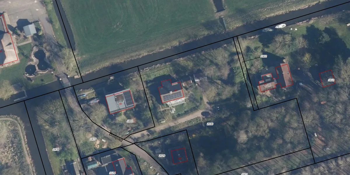 Het perceel waarop Bospad 22 staat heeft een oppervlakte van 4785 m². Dit is een zeer groot perceel. De perceeloppervlakte wordt geregistreerd door het Kadaster. Gedetailleerde informatie over de maten van dit perceel kunt u vinden in het rapport Kadastrale kaart met maatvoering van Bospad 22.