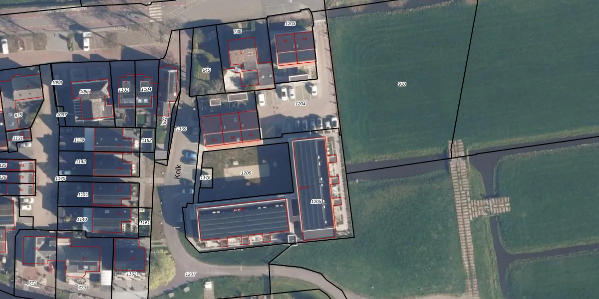 Het perceel waarop Kolk 36 staat heeft een oppervlakte van 1715 m². Dit is een zeer groot perceel. De perceeloppervlakte wordt geregistreerd door het Kadaster. Gedetailleerde informatie over de maten van dit perceel kunt u vinden in het rapport Kadastrale kaart met maatvoering van Kolk 36.