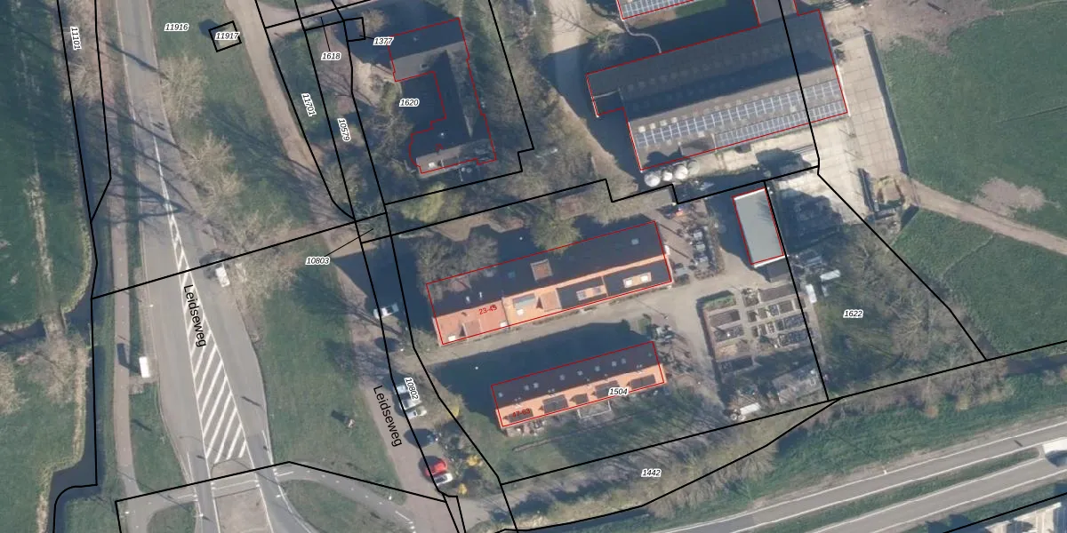 Leidseweg 43 is gelegen op kadastraal perceel AKM01F1504. Deze kadastrale aanduiding is uniek en wordt gebruikt door het Kadaster om eigendomsrechten en andere zakelijke rechten vast te leggen. Het perceel maakt onderdeel uit van de kadastrale gemeente Alkemade.