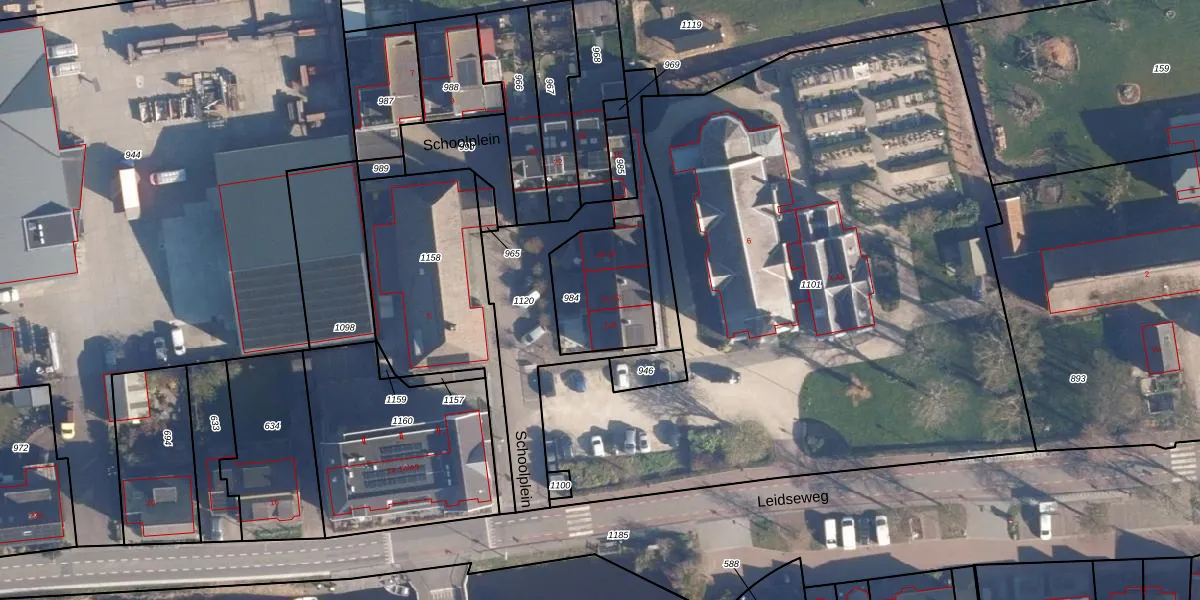 Schoolplein 10 is gelegen op kadastraal perceel AKM01E984. Deze kadastrale aanduiding is uniek en wordt gebruikt door het Kadaster om eigendomsrechten en andere zakelijke rechten vast te leggen. Het perceel maakt onderdeel uit van de kadastrale gemeente Alkemade.