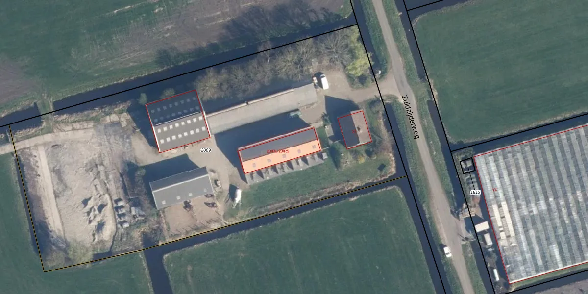 Het perceel waarop Zuidzijderweg 23-R2 staat heeft een oppervlakte van 6620 m². Dit is een zeer groot perceel. De perceeloppervlakte wordt geregistreerd door het Kadaster. Gedetailleerde informatie over de maten van dit perceel kunt u vinden in het rapport Kadastrale kaart met maatvoering van Zuidzijderweg 23-R2.