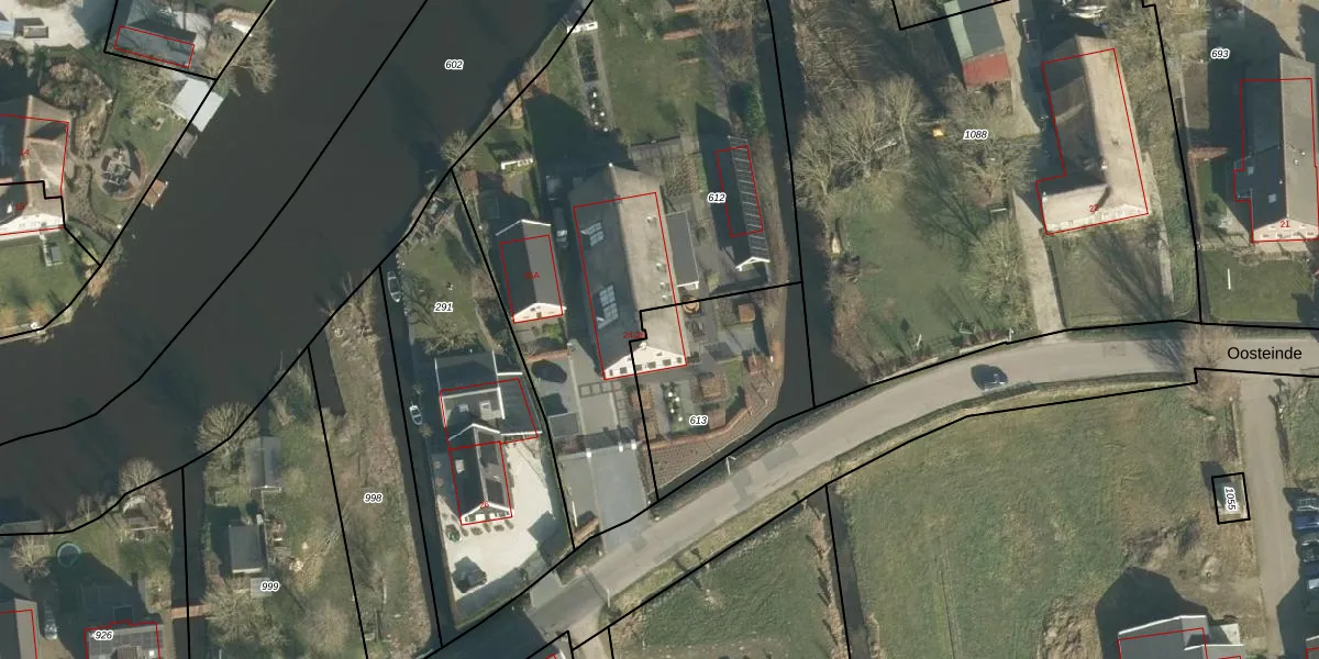 Het perceel waarop Oosteinde 25 staat heeft een oppervlakte van 610 m². Dit is een groot perceel. De perceeloppervlakte wordt geregistreerd door het Kadaster. Gedetailleerde informatie over de maten van dit perceel kunt u vinden in het rapport Kadastrale kaart met maatvoering van Oosteinde 25.