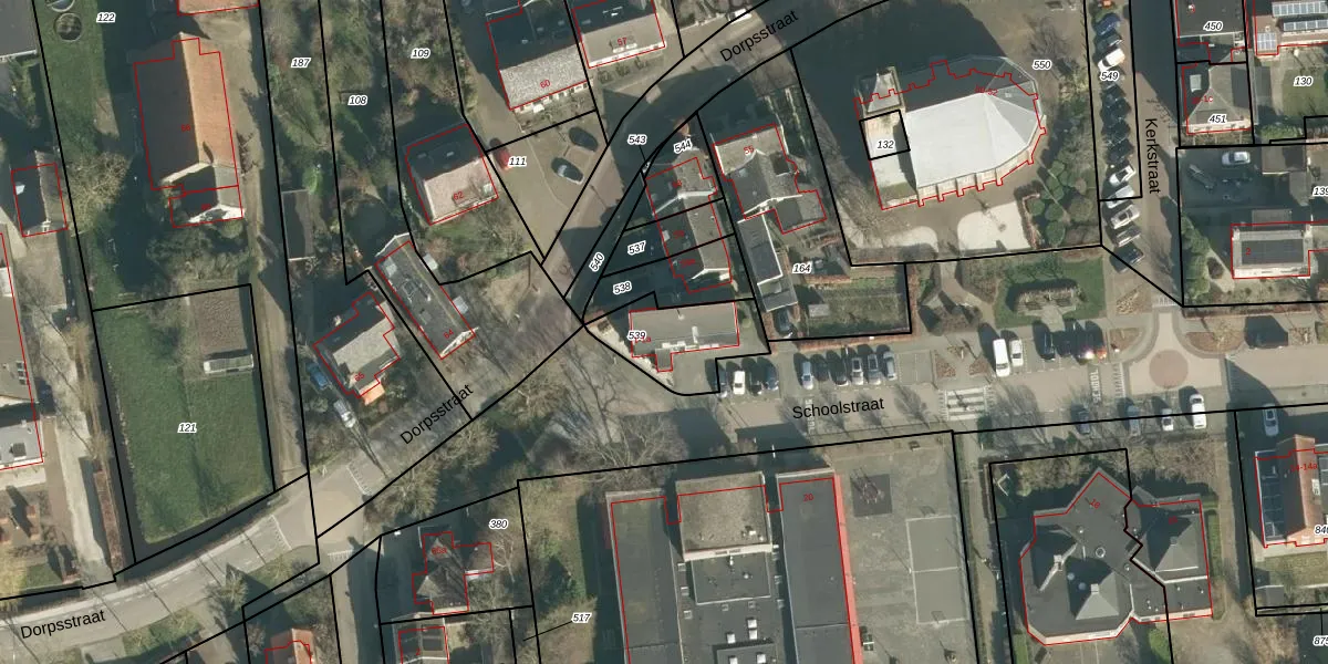 Het perceel waarop Schoolstraat 1 staat heeft een oppervlakte van 255 m². Dit is een middelgroot perceel. De perceeloppervlakte wordt geregistreerd door het Kadaster. Gedetailleerde informatie over de maten van dit perceel kunt u vinden in het rapport Kadastrale kaart met maatvoering van Schoolstraat 1.