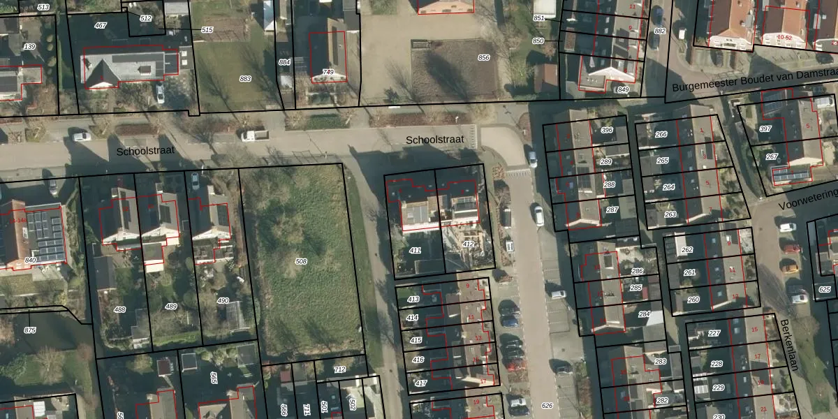 Schoolstraat 4 is gelegen op kadastraal perceel ABS02C411. Deze kadastrale aanduiding is uniek en wordt gebruikt door het Kadaster om eigendomsrechten en andere zakelijke rechten vast te leggen. Het perceel maakt onderdeel uit van de kadastrale gemeente Oud-Alblas.
