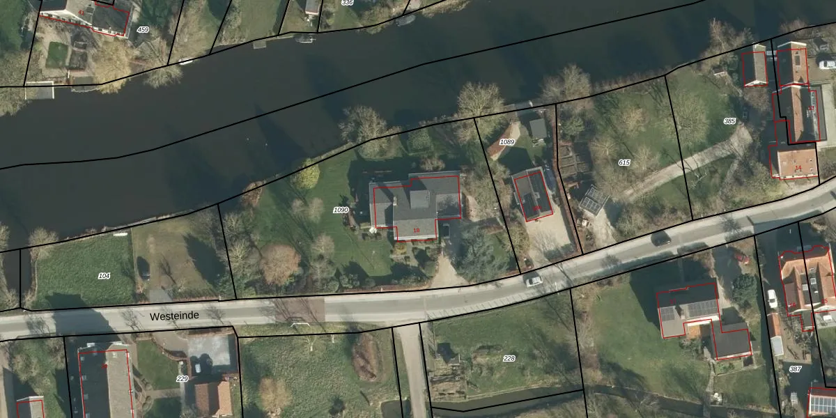 Het perceel waarop Westeinde 18 staat heeft een oppervlakte van 2126 m². Dit is een zeer groot perceel. De perceeloppervlakte wordt geregistreerd door het Kadaster. Gedetailleerde informatie over de maten van dit perceel kunt u vinden in het rapport Kadastrale kaart met maatvoering van Westeinde 18.