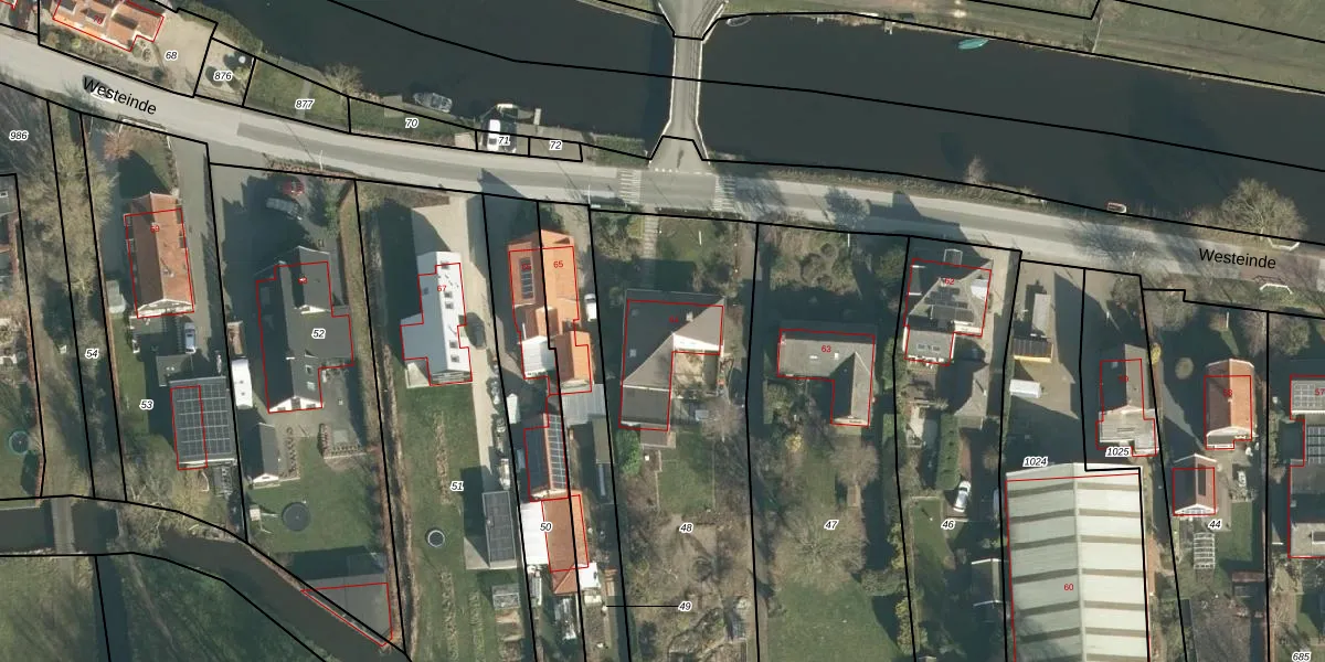 Gebruik de zoekbalk of klik op een perceel voor informatie over de adressen binnen dit perceel.
