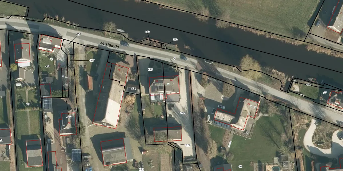Het perceel waarop Westeinde 74 staat heeft een oppervlakte van 850 m². Dit is een groot perceel. De perceeloppervlakte wordt geregistreerd door het Kadaster. Gedetailleerde informatie over de maten van dit perceel kunt u vinden in het rapport Kadastrale kaart met maatvoering van Westeinde 74.