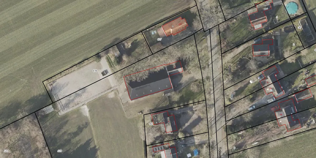 Tolweg 2 is gelegen op kadastraal perceel ALO00AB119. Deze kadastrale aanduiding is uniek en wordt gebruikt door het Kadaster om eigendomsrechten en andere zakelijke rechten vast te leggen. Het perceel maakt onderdeel uit van de kadastrale gemeente Anloo.