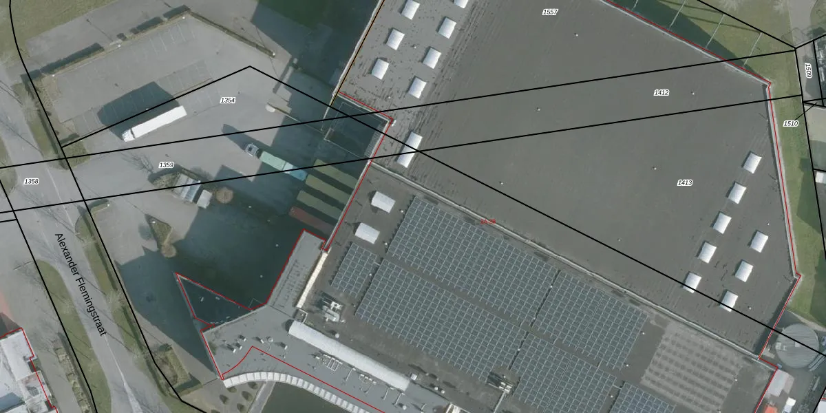 Het perceel waarop Alexander Flemingstraat 2 staat heeft een oppervlakte van 1,2 ha. Dit is een zeer groot perceel. De perceeloppervlakte wordt geregistreerd door het Kadaster. Gedetailleerde informatie over de maten van dit perceel kunt u vinden in het rapport Kadastrale kaart met maatvoering van Alexander Flemingstraat 2.
