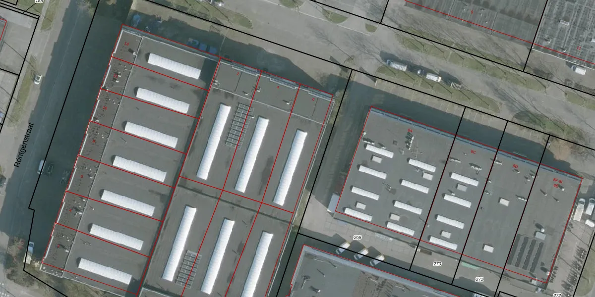 Het perceel waarop Edisonstraat 6 staat heeft een oppervlakte van 9365 m². Dit is een zeer groot perceel. De perceeloppervlakte wordt geregistreerd door het Kadaster. Gedetailleerde informatie over de maten van dit perceel kunt u vinden in het rapport Kadastrale kaart met maatvoering van Edisonstraat 6.