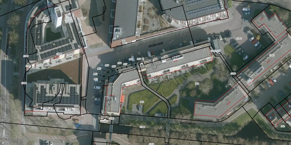Het perceel waarop Molenaar 13 staat heeft een oppervlakte van 2502 m². Dit is een zeer groot perceel. De perceeloppervlakte wordt geregistreerd door het Kadaster. Gedetailleerde informatie over de maten van dit perceel kunt u vinden in het rapport Kadastrale kaart met maatvoering van Molenaar 13.