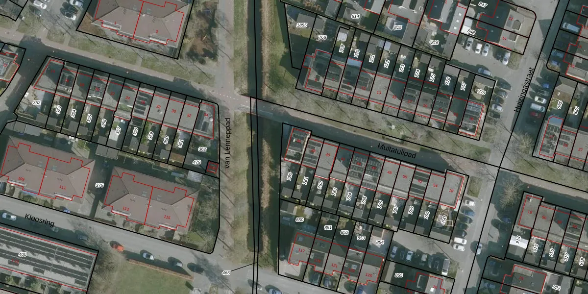 Het perceel waarop Multatulipad 36 staat heeft een oppervlakte van 199 m². Dit is een middelgroot perceel. De perceeloppervlakte wordt geregistreerd door het Kadaster. Gedetailleerde informatie over de maten van dit perceel kunt u vinden in het rapport Kadastrale kaart met maatvoering van Multatulipad 36.