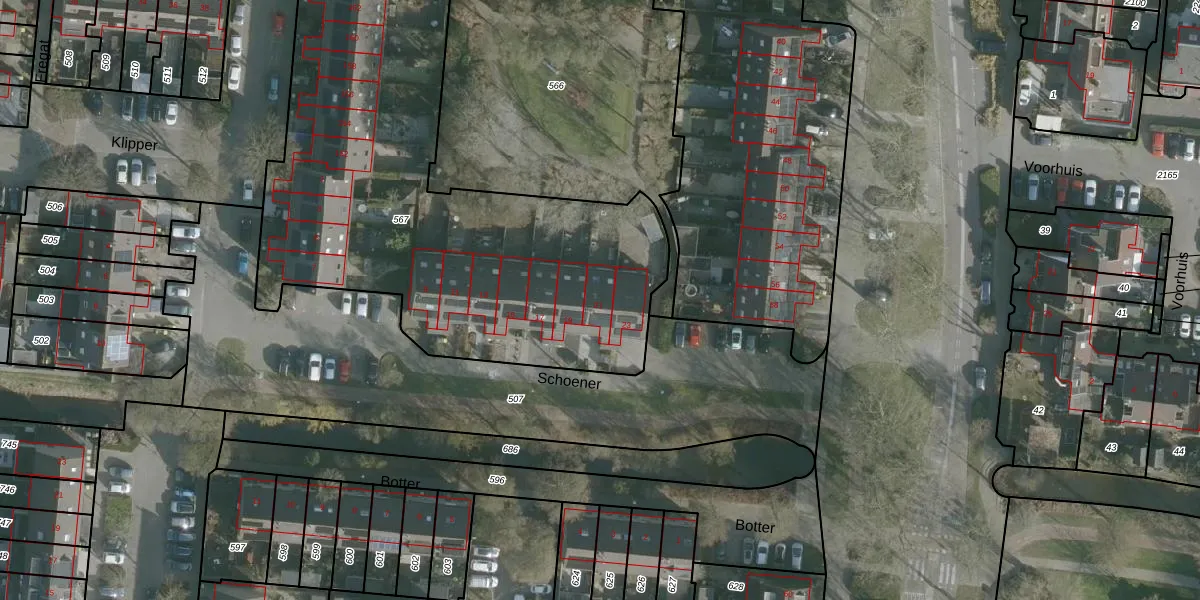 Het perceel waarop Schoener 21 staat heeft een oppervlakte van 2548 m². Dit is een zeer groot perceel. De perceeloppervlakte wordt geregistreerd door het Kadaster. Gedetailleerde informatie over de maten van dit perceel kunt u vinden in het rapport Kadastrale kaart met maatvoering van Schoener 21.