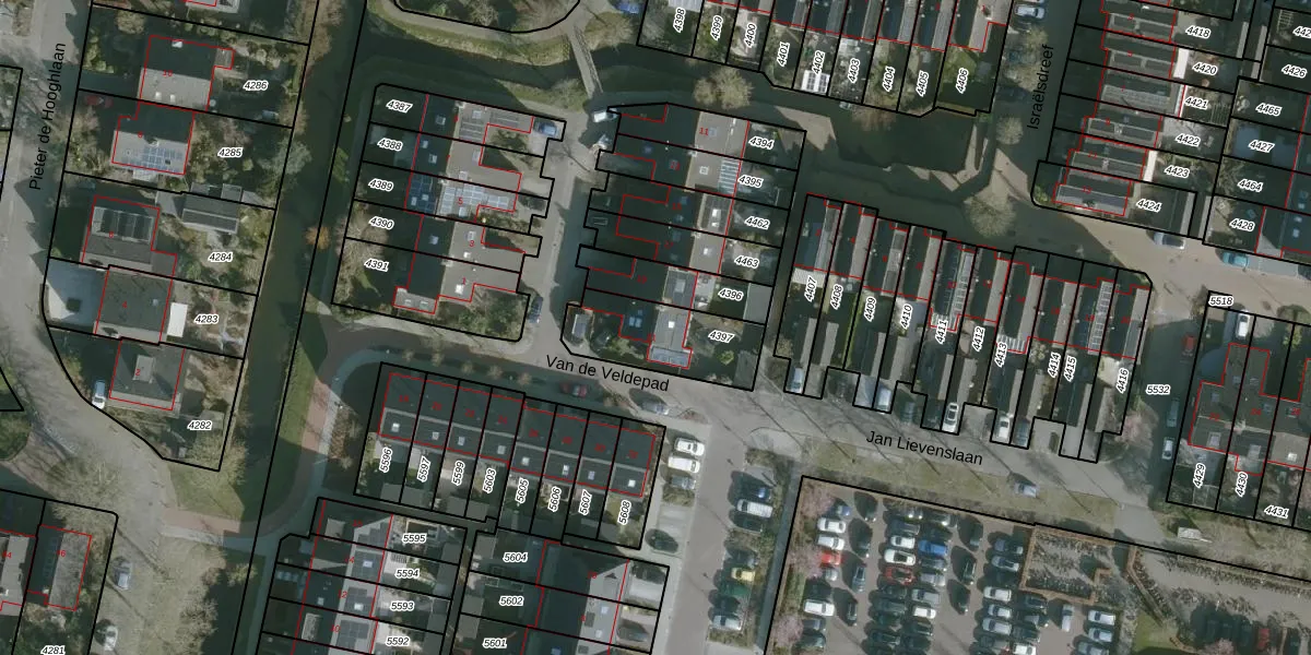 Gebruik de zoekbalk of klik op een perceel voor informatie over de adressen binnen dit perceel.