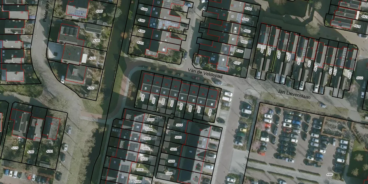 Gebruik de zoekbalk of klik op een perceel voor informatie over de adressen binnen dit perceel.