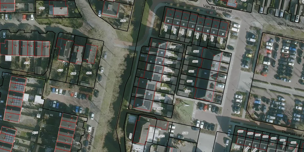 Gebruik de zoekbalk of klik op een perceel voor informatie over de adressen binnen dit perceel.