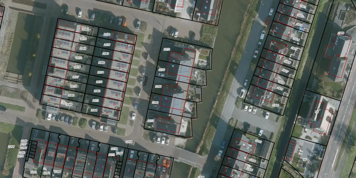 Het perceel waarop Viool 67 staat heeft een oppervlakte van 259 m². Dit is een middelgroot perceel. De perceeloppervlakte wordt geregistreerd door het Kadaster. Gedetailleerde informatie over de maten van dit perceel kunt u vinden in het rapport Kadastrale kaart met maatvoering van Viool 67.