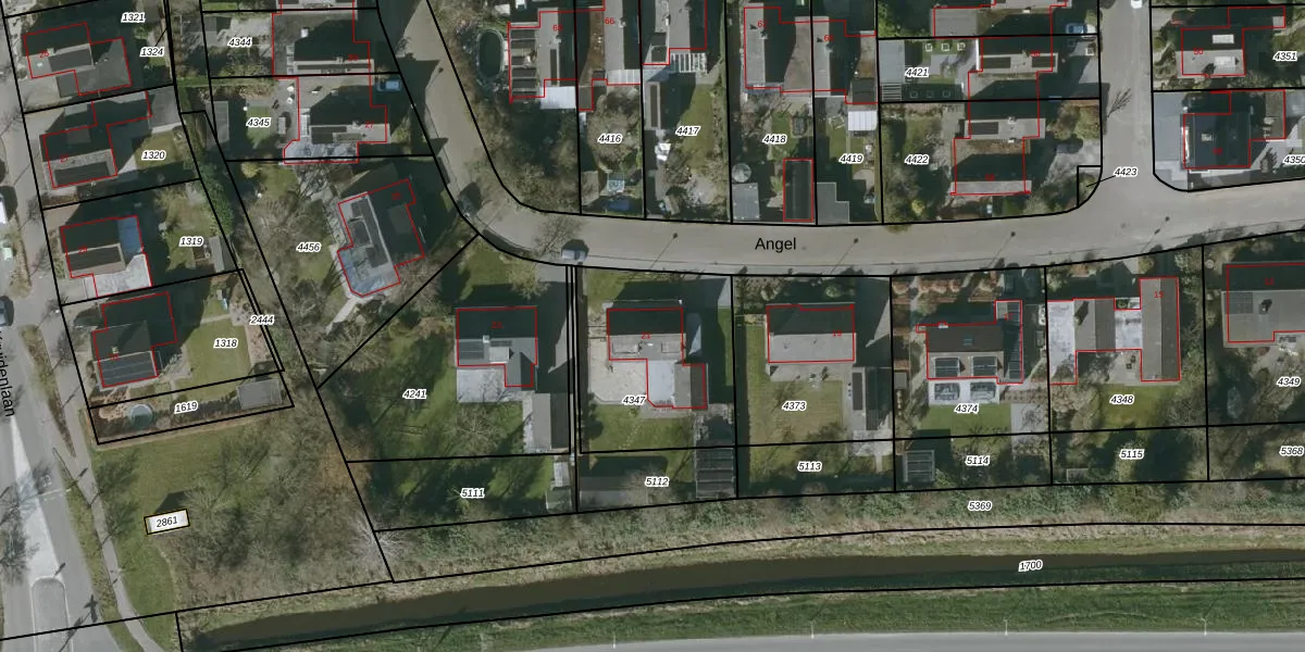 Het perceel waarop Angel 21 staat heeft een oppervlakte van 656 m². Dit is een groot perceel. De perceeloppervlakte wordt geregistreerd door het Kadaster. Gedetailleerde informatie over de maten van dit perceel kunt u vinden in het rapport Kadastrale kaart met maatvoering van Angel 21.