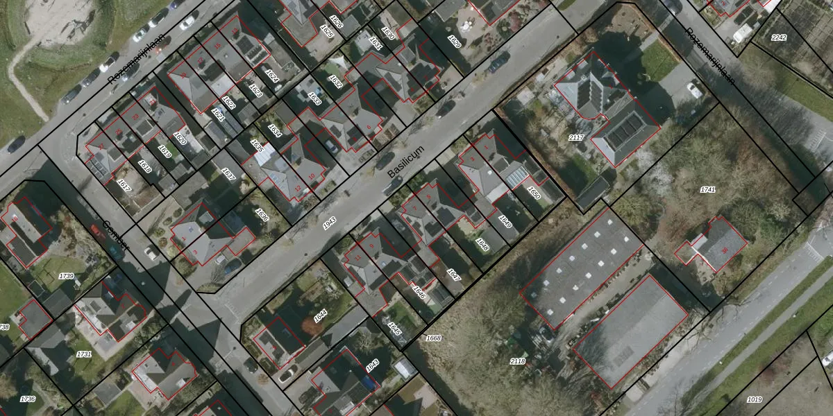 Het perceel waarop Basilicum 7 staat heeft een oppervlakte van 261 m². Dit is een middelgroot perceel. De perceeloppervlakte wordt geregistreerd door het Kadaster. Gedetailleerde informatie over de maten van dit perceel kunt u vinden in het rapport Kadastrale kaart met maatvoering van Basilicum 7.